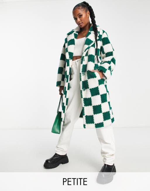 Threadbare Petite - Bear - Cappotto oversize in pile borg verde con stampa a quadri