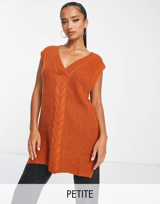 Threadbare Petite - Goldenroad - Gilet in maglia a trecce marrone
