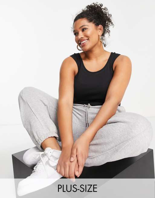 Threadbare Plus - Jojo - Body nero senza maniche con scollo rotondo