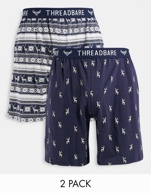 Threadbare - Confezione da 2 pantaloncini da casa blu navy con stampa di cervi