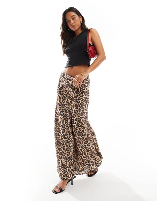 Threadbare - Gonna lunga in raso con stampa leopardata