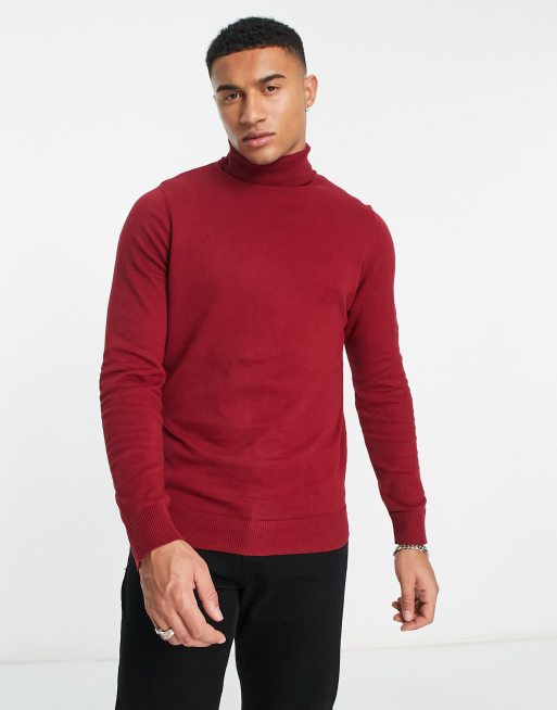 Threadbare - Maglione con collo alto in cotone rosso