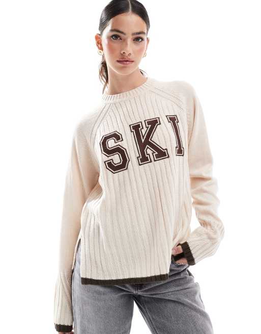 Threadbare - Maglione écru e marrone con motivo "Ski"