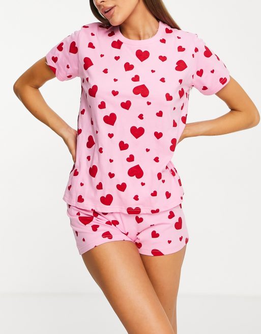 Threadbare - Pantaloncini del pigiama rosa a cuori rossi