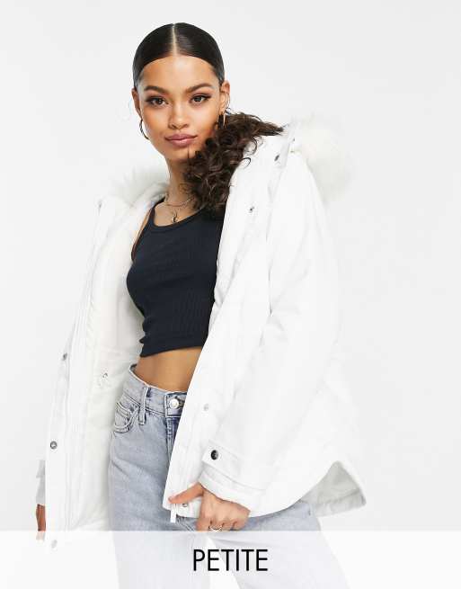 Threadbare Petite - Pop - Parka bianco con finiture in pelliccia sintetica