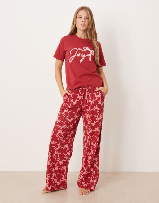 Threadbare - Pigiama a maniche corte rosa e bordeaux con pantaloni con motivo e stampa Joy