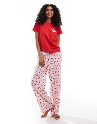 Threadbare - Pigiama con T-shirt e pantaloni con stampa di ciliegia
