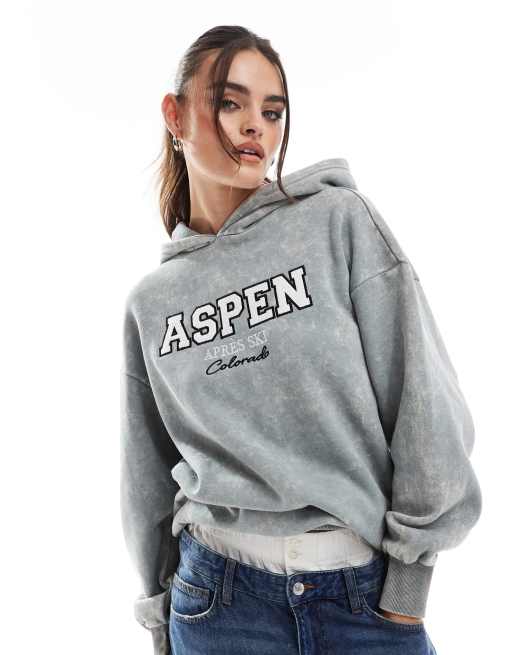 Threadbare - Ski - Felpa con cappuccio verde slavato con stampa