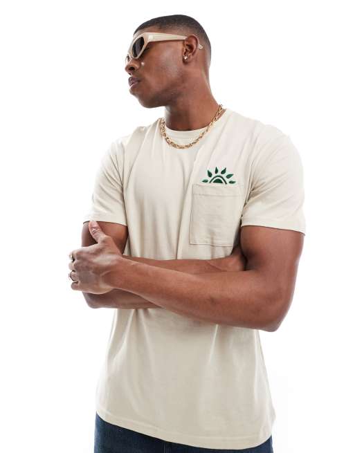 Threadbare - T-shirt color pietra chiaro con tramonto ricamato sulla tasca
