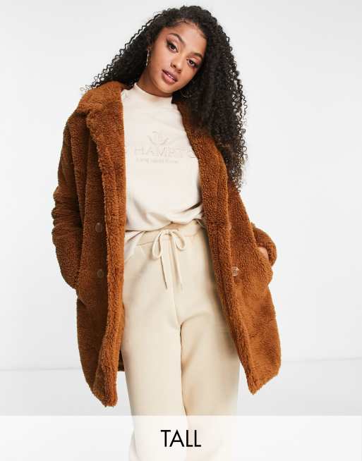 Threadbare Tall - Cappotto lunghezza media in pile borg cuoio