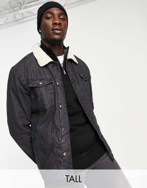 Threadbare Tall - Giacca di jeans nera con fodera e colletto in pile