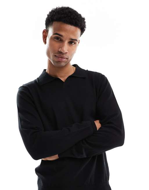 Threadbare - Top a maniche lunghe nero in maglia con colletto aperto