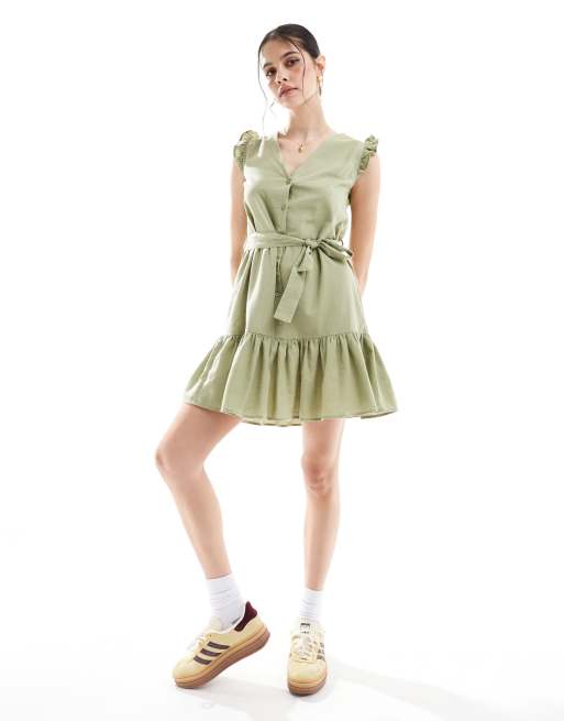 Threadbare - Vestito corto verde pistacchio in misto lino