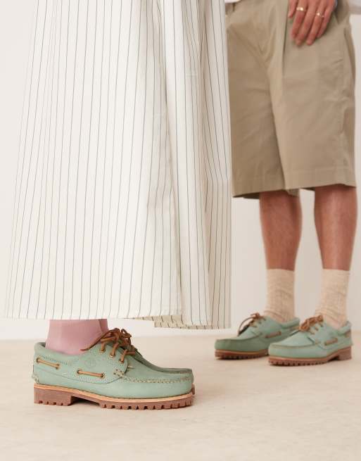 Timberland Authentic - Scarpe da barca verde pastello con 3 occhielli