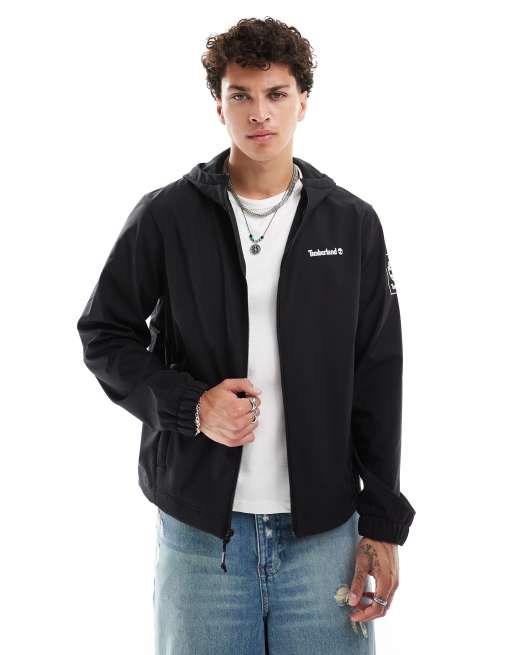 Timberland - Giacca a vento nera con logo e scritta piccola