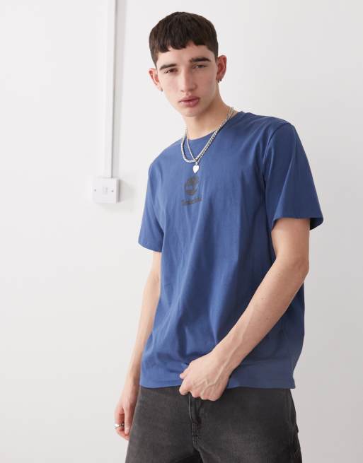 Timberland - T-shirt blu navy con logo centrale
