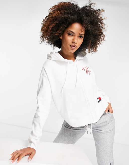 Tommy Hilfiger - 85 - Felpa con cappuccio bianca con logo