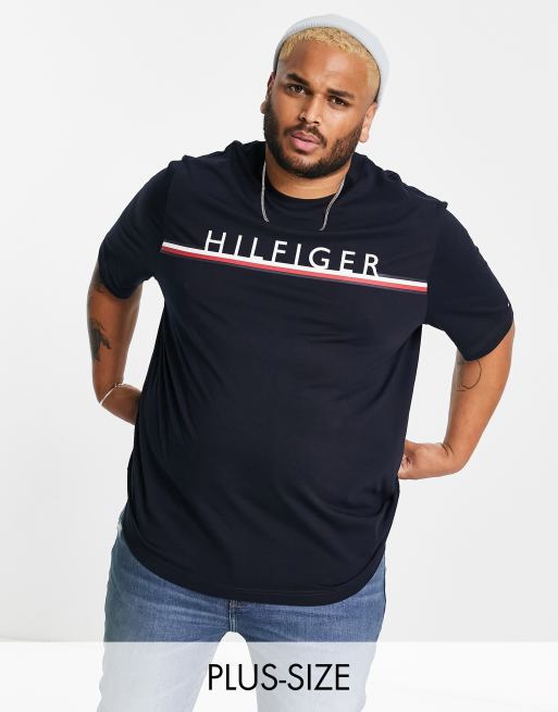 Tommy Hilfiger Big & Tall - T-shirt blu navy con logo lineare