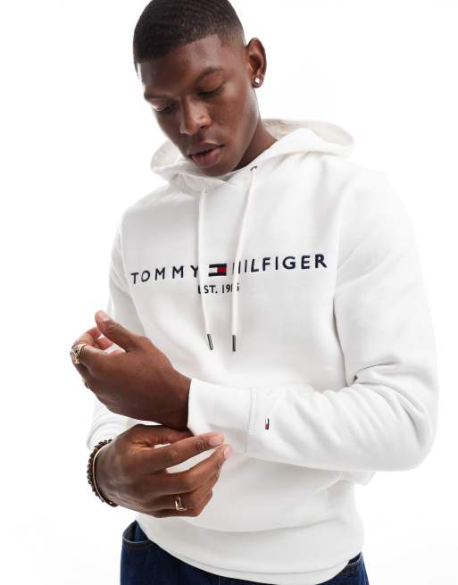 Tommy Hilfiger - Felpa bianca con cappuccio e logo