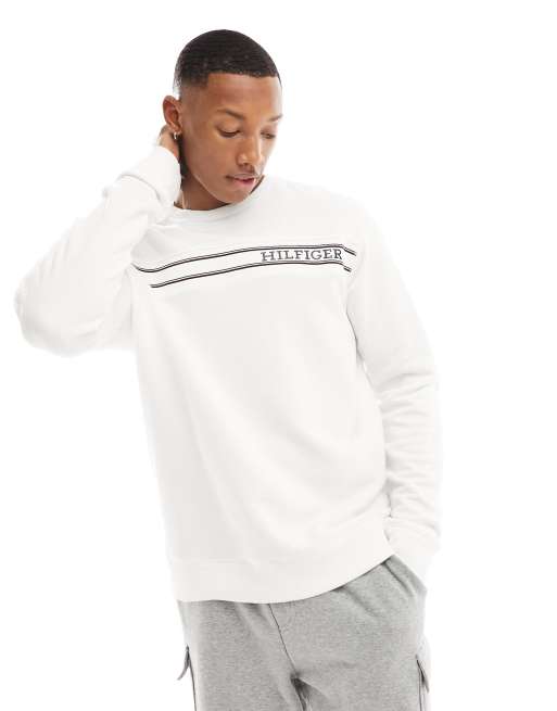 Tommy Hilfiger - Felpa da casa bianca con riga e scritta del logo