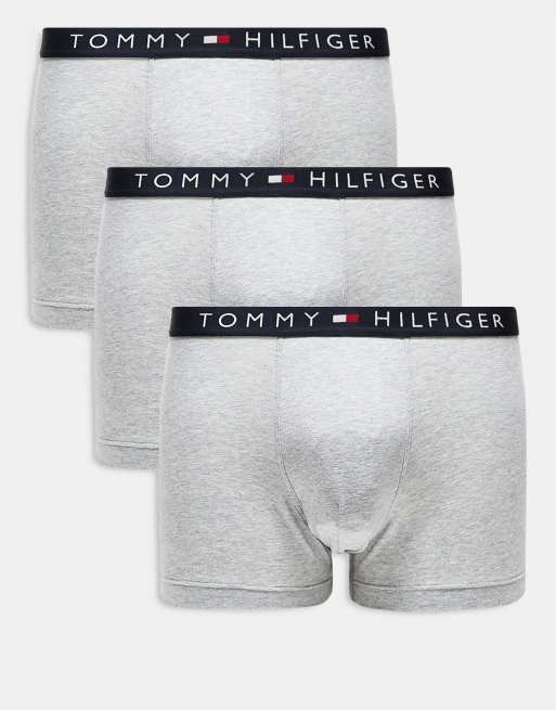 Tommy Hilfiger Original - Confezione da 3 paia di boxer aderenti grigi con fascia blu navy in vita