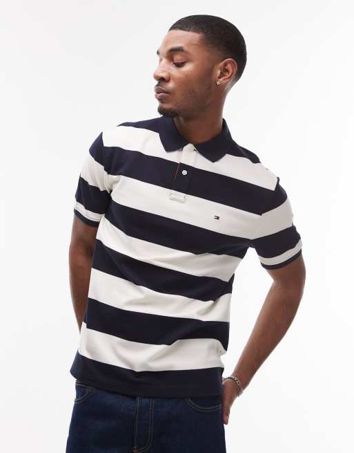 Tommy Hilfiger - Polo regular fit a righe blu navy e bianco sporco