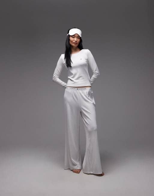 Tommy Hilfiger - Set regalo con top e pantaloni del pigiama e mascherina per gli occhi color bianco