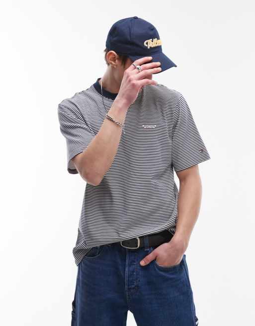 Tommy Hilfiger - T-shirt blu navy a righe con scritta del logo