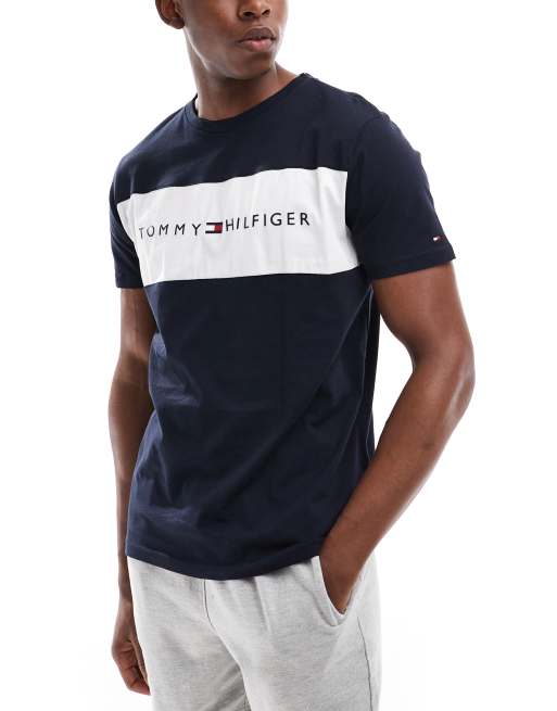 Tommy Hilfiger - T-shirt da casa blu navy con riga con logo