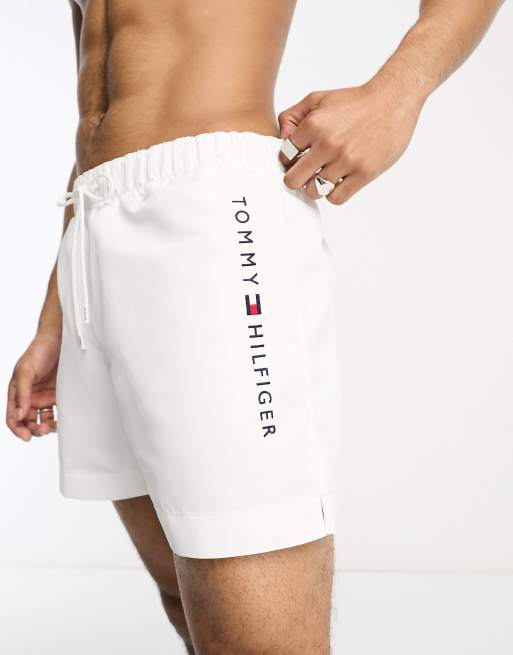 Tommy Hilfiger - The Original - Pantaloncini da bagno medi bianchi con coulisse