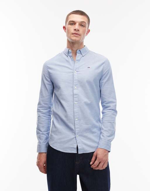 Tommy Jeans - Camicia Oxford slim fit elasticizzata blu
