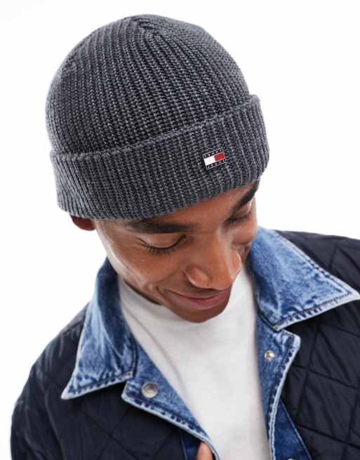 Tommy Jeans - Berretto grigio scuro a coste con bandiera