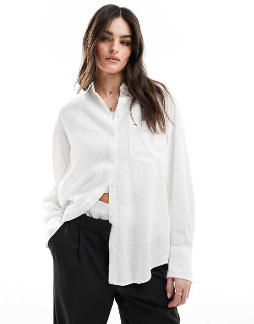 Tommy Jeans - Camicia oversize bianca in misto lino