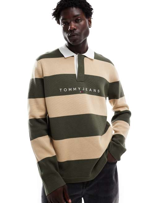 Tommy Jeans - Camicia stile rugby a righe verdi ed écru