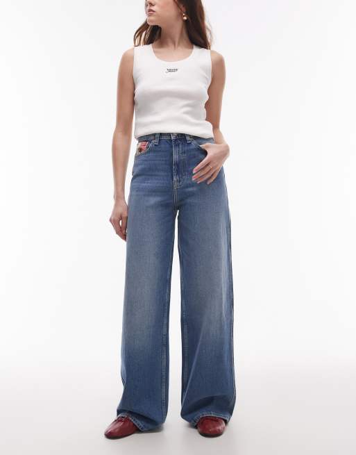 Tommy Jeans - Claire - Pantaloni larghi a vita alta lavaggio medio con bandiera
