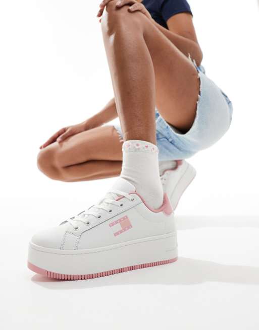 Tommy Jeans - Essential - Sneakers bianche e rosa con plateau
