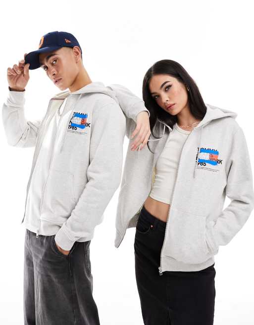 Tommy Jeans - Felpa con cappuccio unisex grigia vestibilità classica con zip e grafica stile graffiti