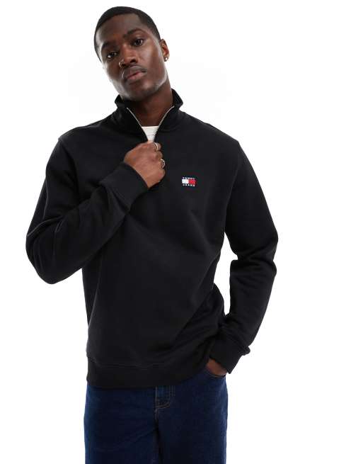 Tommy Jeans - Felpa nera con zip corta e toppa con logo