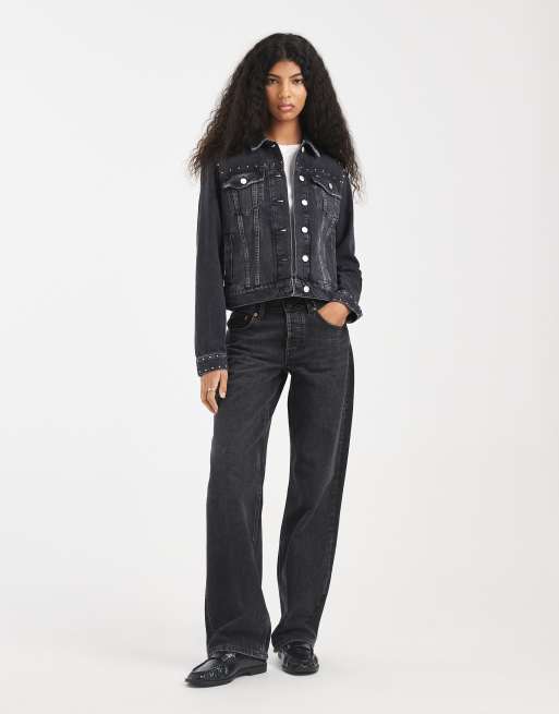 Tommy Jeans - Giacca trucker di jeans lavaggio nero con borchie