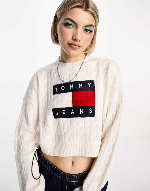 Tommy Jeans - Maglione bianco con riquadro della bandiera