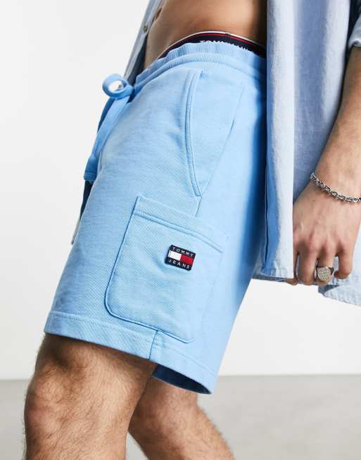 Tommy Jeans - Pantaloncini in jersey blu con stemma con logo