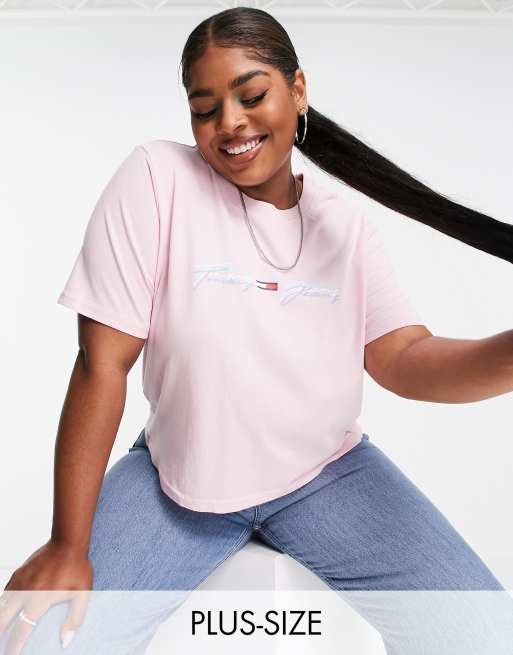 Tommy Jeans Plus - Pastel Collection - T-shirt rosa con logo lineare