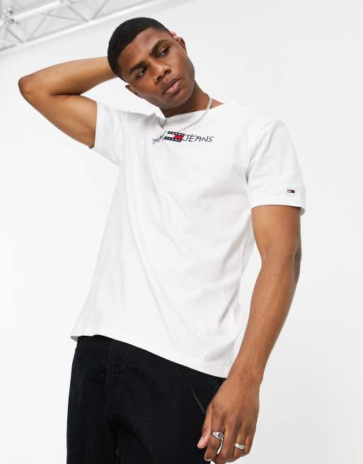Tommy Jeans - T-shirt bianca con scritta del logo ricamato