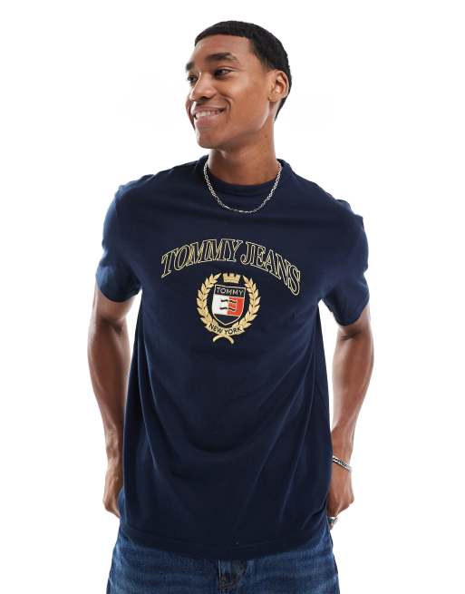 Tommy Jeans - T-shirt blu navy con stemma del logo oro