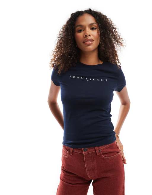 Tommy Jeans - T-shirt blu navy slim fit con logo lineare