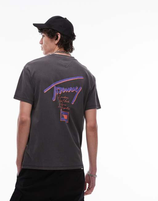 Tommy Jeans - T-shirt nera e viola con stampa del logo sul retro