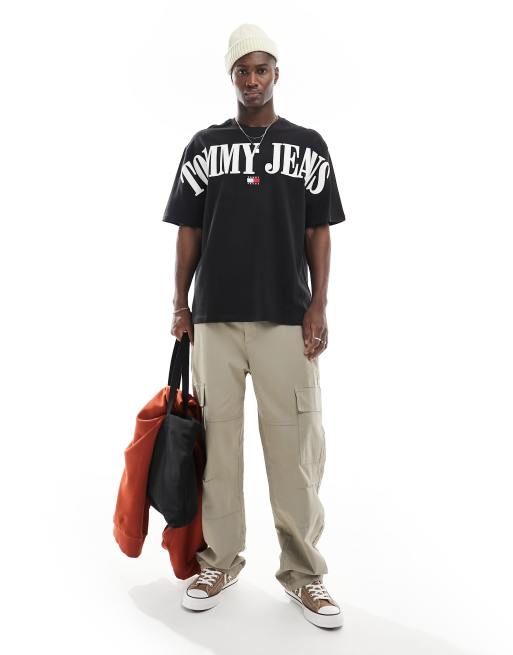 Tommy Jeans - T-shirt oversize nera con etichetta del logo