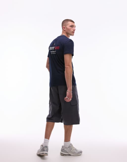 Tommy Jeans - T-shirt stile college blu navy con stampa grafica sul retro