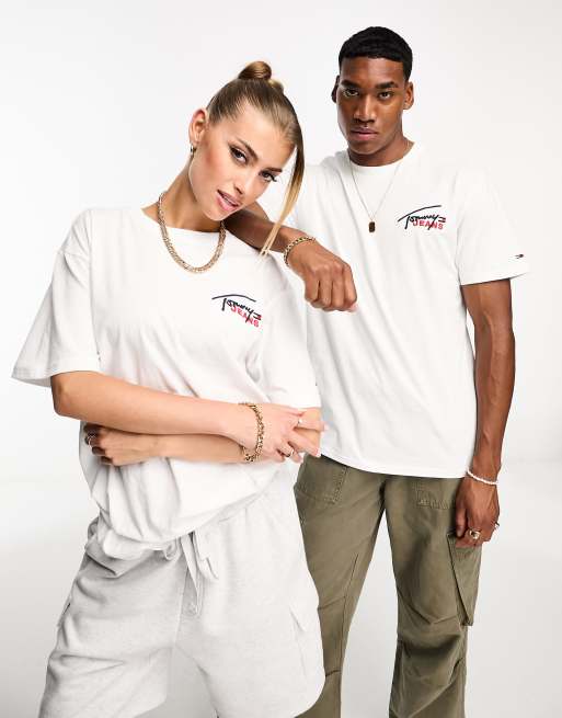 Tommy Jeans - T-shirt unisex classica bianca con logo
