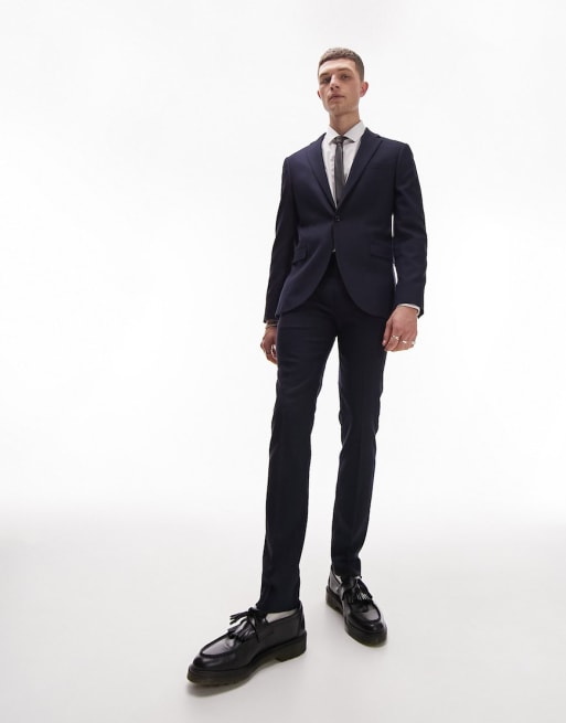 Topman - Abito super skinny testurizzato ed elasticizzato blu navy